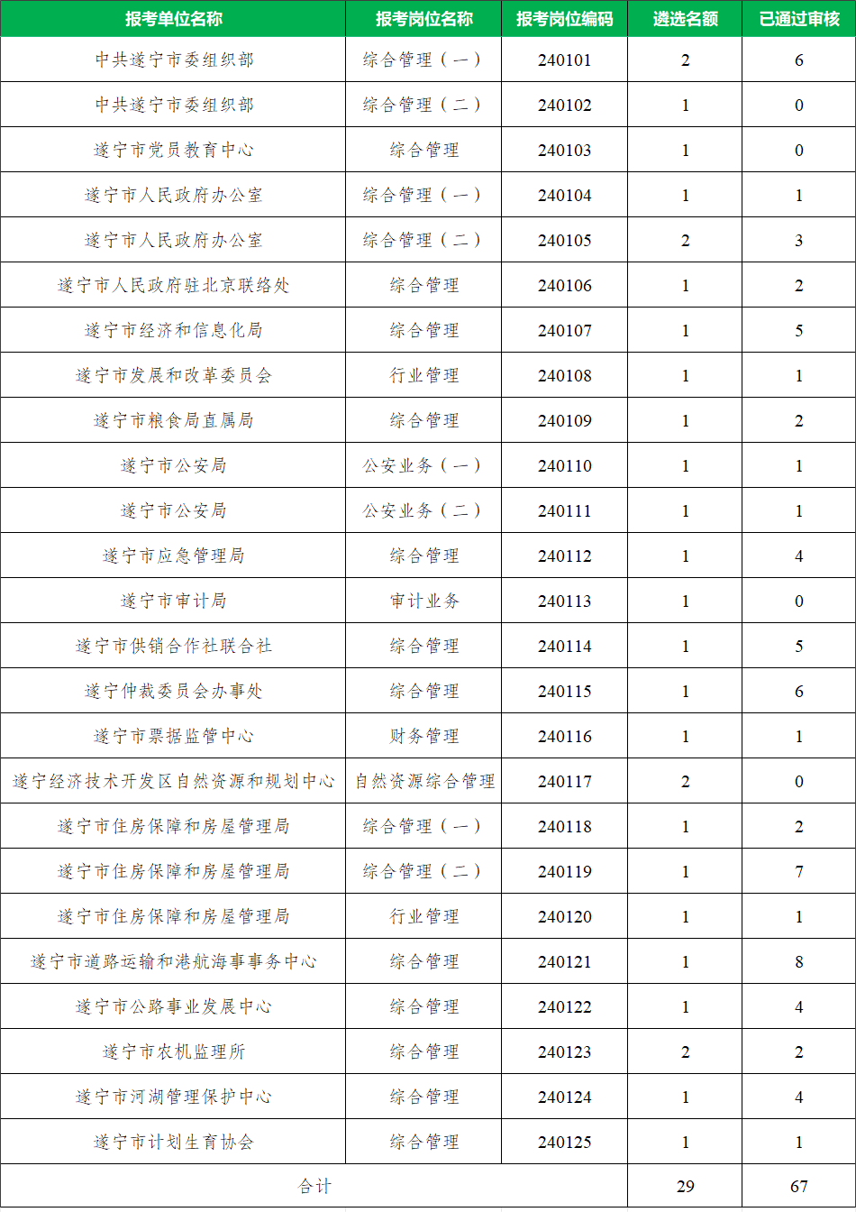 2024年遂宁市市直机关公开遴选公务员报名情况统计 (截至2024年5月18日18:00)