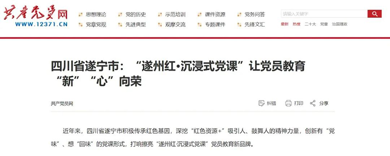 四川省遂宁市:“遂州红・沉浸式党课”让党员教育“新”“心”向荣 近年来,四川省遂宁市积极传承红色基因,深挖“红色资源+”吸引人、鼓舞人的精神力量,创新有“党味”、想“回味”的党课形式,打响擦亮“遂州红・沉浸式党课”党员教育新品牌。 布局“红色矩阵”,打造“家门口”的星级阵地。实施“红色矩阵”工程,着力提升党员教育资源不成体系、规模集聚效应不强等短板问题。在蓬溪起义牛角沟遗址、贺诚生平陈列馆、沱牌生态产业园等红色场馆、精品村、园区,打造“十个以上星级阵地+百个现场教学点+千堂特色党课”,推出20余条红色研学经典线路,配套开发“遂宁英模”“卓筒宋风”“川中粮仓”等10个系列“沉浸式”党课,为全市280余万名党员干部群众,开启在“15分钟交通圈”内时时处处受教育新模式。“中国沼气能源第一村”海龙凯歌农旅园区自5月开园以来,承办600余场(次)现场教学、培训党员干部6.9万余人(次)、接待研学群众50余万人(次),成为全市“最热门”星级阵地“打卡地”。 细烹“新鲜课堂”,激发“全员学”的浓厚氛围。着力破解传统党员教育课程形式单一、受欢迎度不高等难题,积极创造全身心参与、体验式演绎的党课新场景。精心创作《红土先锋》榜样党课、《红飘带》情景党课、《中国工农红军四川第一路》沙盘党课、《大英象山的红色记忆》《信仰之光》音乐党课等一大批充满正能量、兼具大流量的新时代党课样板。倡导精准滴灌理念、精细分类实施,开设“鲜味十足”的“云课堂”“田间课堂”“车间课堂”等,满足不同行业、年龄党员党课教育需求。 织密“送教网络”,深化“润初心”的党性淬炼。着力改善党课覆盖触角不够、党课讲解队伍“打游击”等状况,建立健全党课开讲常态长效机制。每年坚持开展送党课进基层活动,推动精品党课进企业、进农村、进机关、进校园、进社区;原创制作《书记带您畅游美丽乡村》等微视频党课,在“遂宁组工网”和“遂宁红土先锋”微信公众号播出,点击量突破100万人(次)。统筹建立13支专兼职讲解员队伍,培养50余名市县党校年轻教师、青年选调生、基层党组织书记、民营企业家、非遗传承人等为“金牌讲解员”,锻造一支“永远带不走”的党课讲解员队伍。 (来源:共产党员网|遂宁市委组织部)