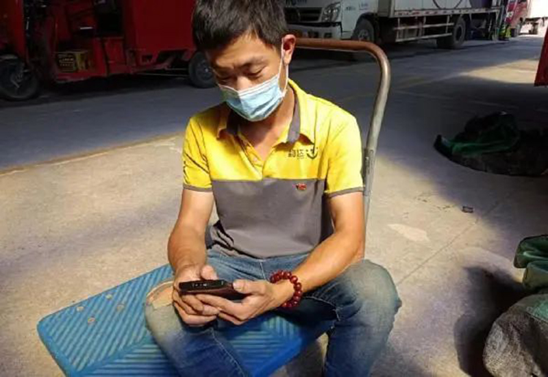 快递小哥在休息间隙利用“掌上课堂”开展学习