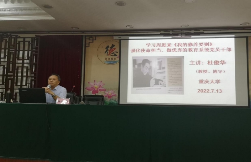 △重庆大学教授、重庆市党建人才专家、博士后导师杜俊华讲解教育与党建融合式发展
