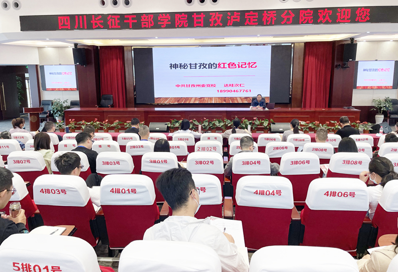5月23日下午,在雄壮的国歌声中,开班仪式举行。四川长征干部学院甘孜泸定桥分院相关负责人在致辞中向全体学员介绍了长征精神和“两路”精神,并向中青班授班旗。