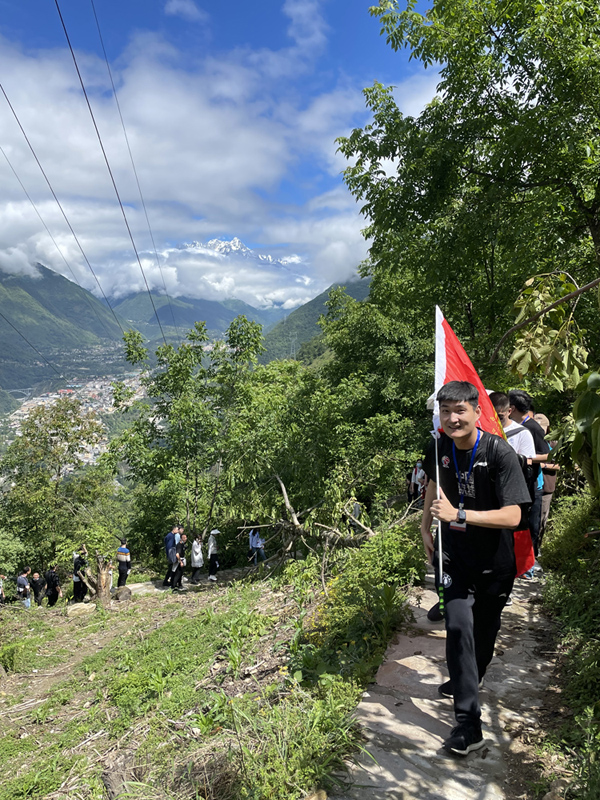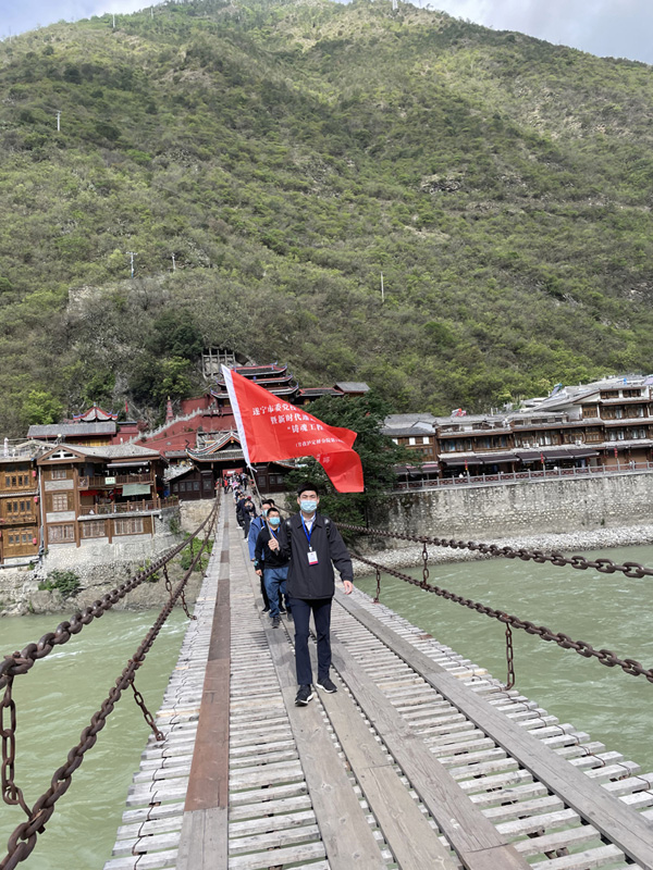 重走长征路是本次学习的一个重要环节,虽然烈日炎炎,却丝毫不影响学员的热情,大家前往红军长征路过的磨岗岭村重走长征路。本次路程选取了红军曾经走过的一段山路,全体学员沿着革命先辈走过的足迹,追忆那段为了信仰而坚定前行的岁月,体验长征路上的苦难与艰辛。全体学员互相帮助、齐心协力,战胜了陡峭的山路,提前到达目的地,彰显了青年党员的坚定信念和决心。学员们还参观了磨西红军长征陈列馆、毛泽东住地旧址、烹坝镇沙湾村,遥观了大渡河大桥。