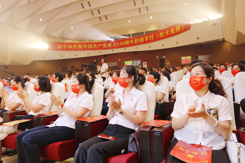 走近红土先锋,汲取榜样力量。节目呈现出一件件感人至深的故事,一幕幕触动心弦的画面,一个个在平凡岗位上成就不平凡的“先锋榜样”,赢得了全场一阵阵热烈的掌声,牵动着每一位观众的神经。现场观看节目的不少党员干部湿润了眼眶,甚至流下了眼泪。大家认为,近距离感受“先锋榜样”的事迹,倾听他们的心声,感悟榜样的力量,是一次十分深刻的思想洗礼。大家纷纷表示,要向“先锋”学习,汲取榜样力量,充分发挥共产党员先锋模范作用,为推动遂宁高质量发展、加快建设成渝发展主轴绿色经济强市贡献力量。