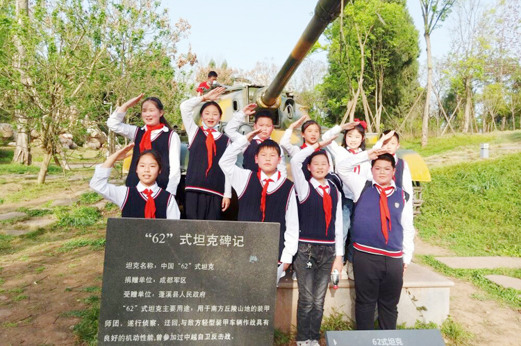 河东实验小学少先队员到蓬溪县旷继勋纪念馆开展向烈士雕像敬献鲜花、行队礼、唱队歌活动和国防科普教育,从小培养少先队员热爱党、热爱祖国、热爱人民的深厚情怀,将革命薪火代代相传。