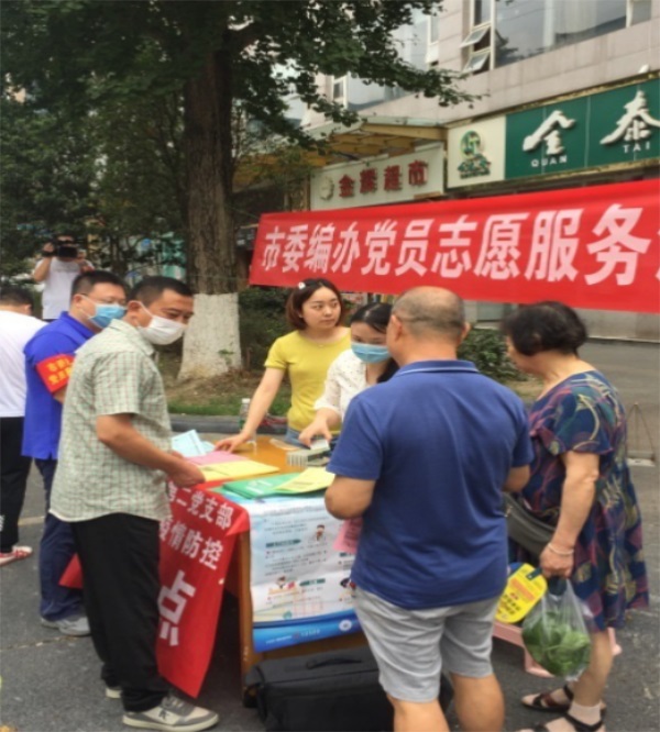 组织党员志愿服务队到联系社区经开区北兴社区开展党员志愿服务活动,在人流量较大的“遂宁花园”“水都豪庭”等居民小区设立防疫宣传点,深入开展 防疫政策、知识宣传;组织党员志愿服务者对社区办公场所及辖区部分街道集中开展卫生大扫除活动,为推动我市“爱国卫生运动”深入开展、营造良好环境贡献力量。
