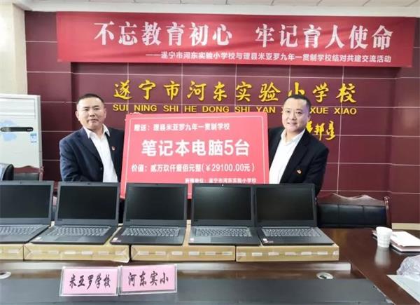 河东实验小学与理县对口共建单位米亚罗九年一贯制学校开展了“不忘教育初心,牢记使命”主题教育结对共建学术交流活动,就共建课题《课程融合,促进课堂变革,推动民族地区小微学校内涵发展》进行了深入的探讨,并组织一支“河小”智力团队全力支持“米小”的学校发展。活动当天,河东实验小学捐赠了价值29100元的笔记本电脑。