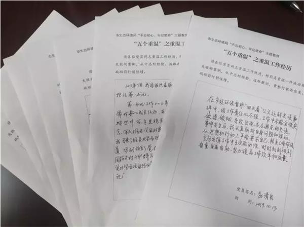 全市“不忘初心,牢记使命”主题教育全面启动后,市生态环境局坚持把学习教育置于前端,除完成规定动作学习外,还创新开展重温党史新中国史、重温入党志愿书、重温入党誓词、重温父母教诲、重温工作经历“五个重温”活动。