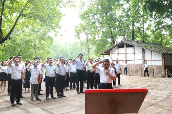 在旷继勋蓬溪起义指挥部遗址旁党旗广场,全体党员干部面对鲜红的党旗,重温了入党誓词,充分激发了党员干部革命理想高于天的壮志豪情。