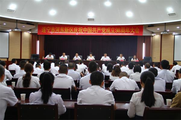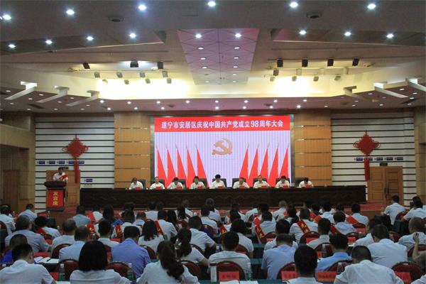 近日,河东新区、安居区、射洪县分别召开庆祝中国共产党成立98周年大会,回顾党的光辉历程,表彰先进典型,激励全体党员不忘初心、牢记使命、砥砺前行。