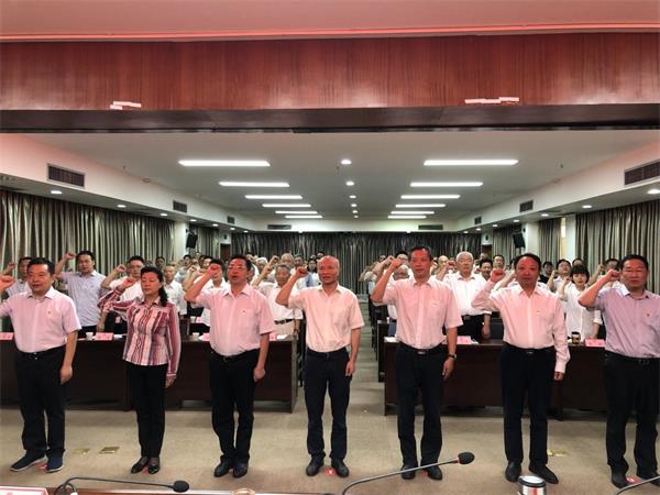 市人大常委会机关全体党员进行了集体宣誓,重温入党誓词,对2019年市人大常委会机关先进党组织、优秀共产党员、优秀党务工作者进行了表彰,进一步激发全体党员同志“不忘初心、牢记使命”,为加快建设成渝发展主轴绿色经济强市贡献人大智慧和力量。