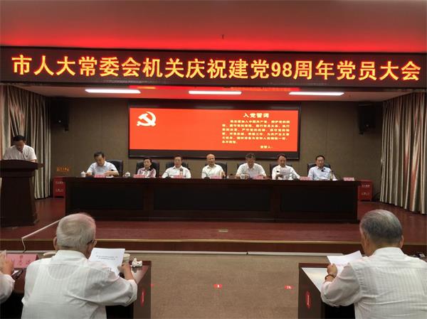 6月25日上午,市人大常委会机关举行庆祝建党98周年党员大会。