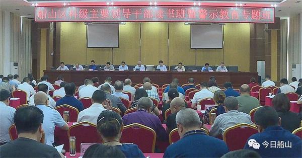 4月24日,船山区举办科级主要领导干部读书班暨警示教育专题班,深入学习贯彻习近平新时代中国特色社会主义思想和习近平总书记对四川工作系列重要指示批示精神,深入贯彻省部级主要领导干部“坚持底线思维,着力防范化解重大风险”专题研讨班和省委、市委读书班暨警示教育专题班精神,引导全区县级领导和科级主要负责同志进一步拧紧思想的开关、上紧行动的发条,坚决打好防范化解重大风险攻坚战,扎实做好蒲波严重违纪违法案以案示警、“以案促改”工作,进一步加强政治建设、增强执政本领、推动工作落实,为大力实施“1153发展战略”、推动富民强区再上新台阶营造良好政治生态和发展环境。