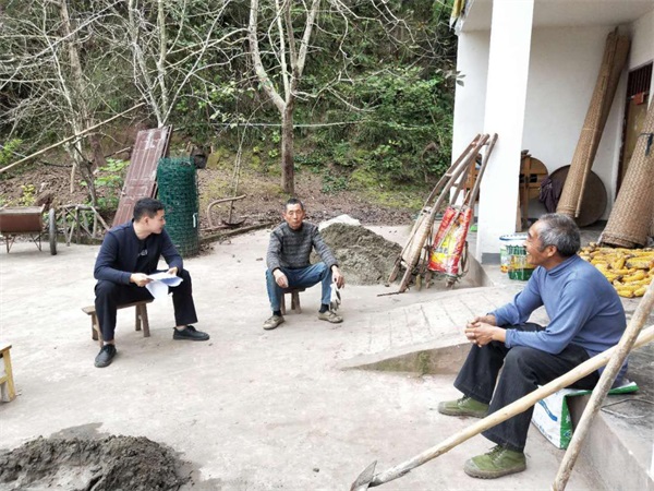 吴烨培(左一)正在向村民讲解国家扶贫政策