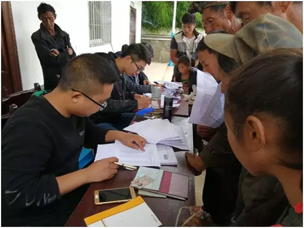 近日,凉山州布拖县乐安乡瓦沟村驻村帮扶人员刘程联合村三职干部,在瓦沟村村委会为村民办理社保卡申领工作,仔细为大家讲解申领相关事宜。