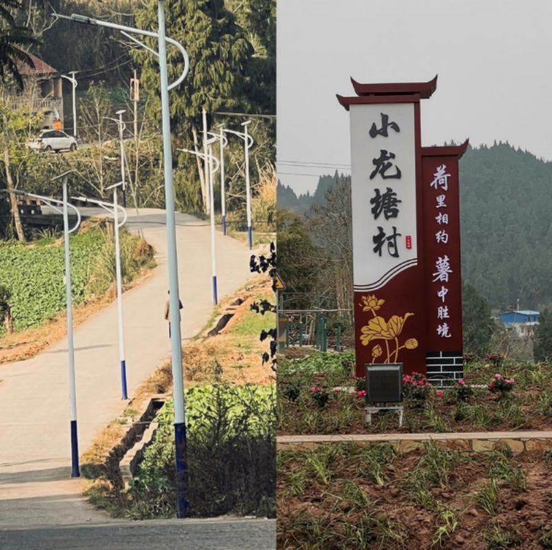 找到方法,让环境更有亮度。小龙塘村有7公里的过境主路,沿线住着近一半的村民,每当夜幕降临,小龙塘村被笼罩在黑夜中,群众出行极为不便。2022年,谭万明自掏腰包1万多元,并通过所在单位帮、成功人士捐的方式,筹集资金15万余元,启动了“小龙塘村亮化工程”,为村里安装路灯7.1公里,解决了群众“打黑摸”的难题。2022年底,他再次筹集资金3万余元,为村庄树立“名牌”,给村容增添一抹靓色。