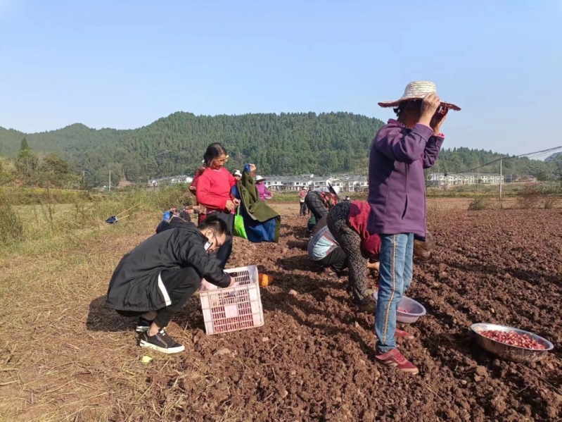 谋求发展,富民产业引进来。蔡其斐深知,只有产业振兴才能带动农民增收。到村工作后,他积极摸排村内资源,抓住一切机会开展宣传招引,最终在与河沙镇党委的密切配合下,顺利引进遂宁市小红粮农业开发有限公司,在赤岩沟村流转土地3000余亩,2022年种植大豆800余亩、玉米套种400余亩、高粱500亩、南瓜280亩、榨菜400亩、小麦300亩、火葱和大蒜120亩;引进2个西瓜种植户种植西瓜330余亩,村内闲置土地使用率达到100%。两年以来,引进产业帮助村民实现就近务工4000人次,工资收入30万余元,带动村民共同增收致富。