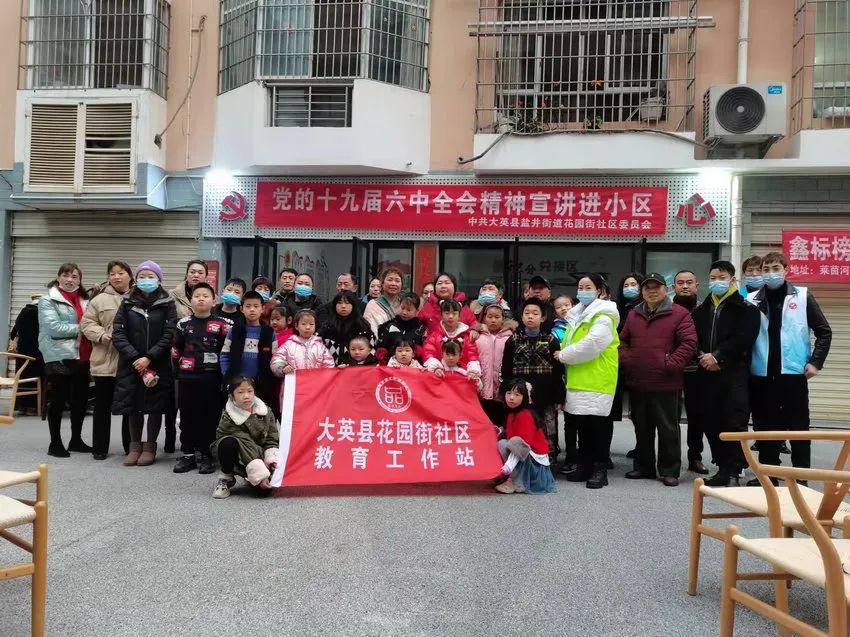 花园街社区党委副书记何红英到水晶城小区宣讲党的十九届六中全会精神。