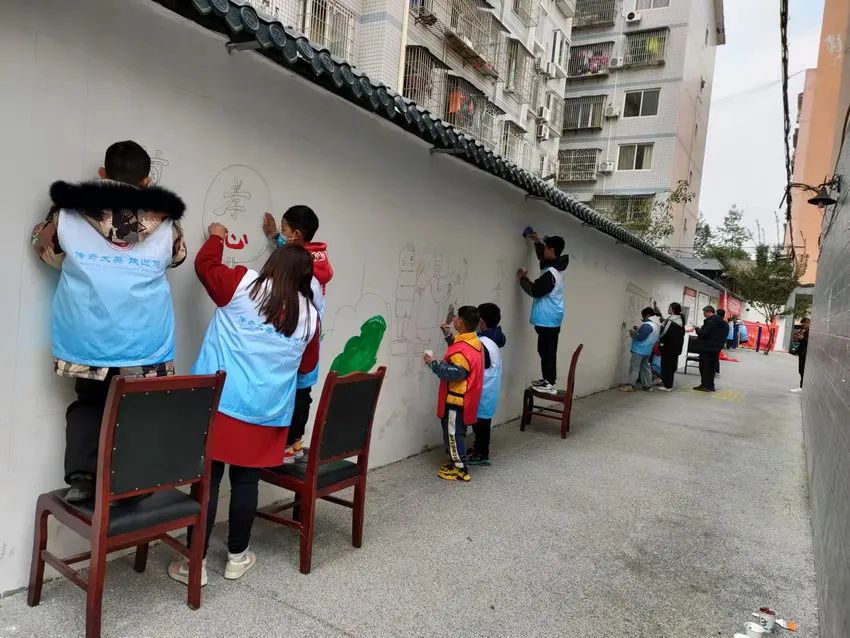 启善社工组织小志愿者到水晶城小区开展院落墙绘。