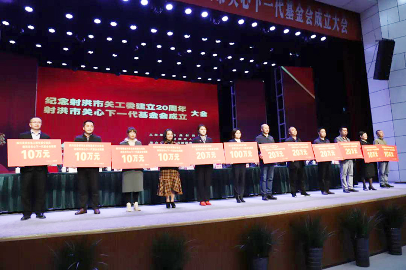 会上,谢世杰为射洪市关心下一代基金会授牌,谢世杰、张中伟、陈官权、邵革军、景临等省市领导为射洪市关心下一代工作突出贡献奖、射洪市关心下一代工作爱心企业、射洪市首届全面发展最美少年获奖代表颁奖。大会还举行了射洪市关心下一代基金会现场捐赠,省关工委、省关心下一代基金会和云辰国际等11家射洪企业向射洪市关心下一代基金会现场捐赠260万元。