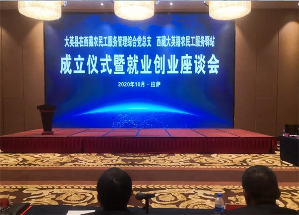 10月25日,大英县在西藏农民工服务管理综合党总支、西藏大英籍农民工服务驿站在拉萨市成立。