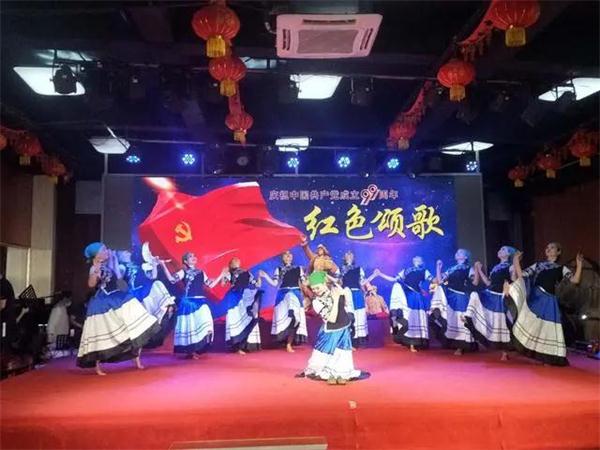 文艺演出在齐唱《没有共产党就没有新中国》歌声中拉开帷幕,参演党员纷纷登台,奉献了歌伴舞《绣红旗》、川剧小品《放军粮》、男声小合唱《把最美的歌献给妈妈》等歌颂党的精彩文艺节目,表达遂宁文艺工作者对党的生日的深情祝福。