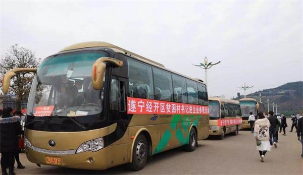 “离家近,工资、吃饭、住宿,样样有保障。”3月11日,已在广义微电子上班半个月的余建华满意地说起工作环境。他的新工作缘于经开区举办的村党支部书记进厂当“红娘”活动。此前,经开区内劳动力丰富的新桥镇、北固镇38名村党支部书记被邀进厂参观,了解企业岗位设置、福利待遇和工作环境,村党支部书记又将信息介绍给村民,成为企业招工和村民务工的纽带。这次线下招聘是遂宁经开区帮助企业招工的创新方式之一。“随着园区100余家企业相继复工复产,用工缺口高达2000多人。”遂宁经开区劳动保障与民政事务局局长李勇介绍,为了同时解决“用工荒”和“就业难”,经开区线上线下齐发力,已成功新聘员工600余名。近日,联恺照明总经理田伟在遂宁经开区朋友圈里“火”了。为了帮助企业招工,田伟在经开区企业招工抖音平台当起主播,进行企业宣讲、回答线上问题,熟练的业务、幽默的语言吸引了大批粉丝。半天时间,就有100余人关注、报名。这样的招聘方式,经开区已开展多场。为促进用人单位和求职者对接成功率更高,园区还组织3辆大巴车到各个区县,将贫困村干部和贫困家庭代表接到园区企业进行实地参观,各企业“一把手”带领大家体验企业工作环境和生活环境。遂宁安居区拦江镇贫困户邹艳琼在参观志超科技有限公司后,立即现场报名,“我老公在广东打工,我打算让他回来,一起在家门口工作。”邹艳琼说。