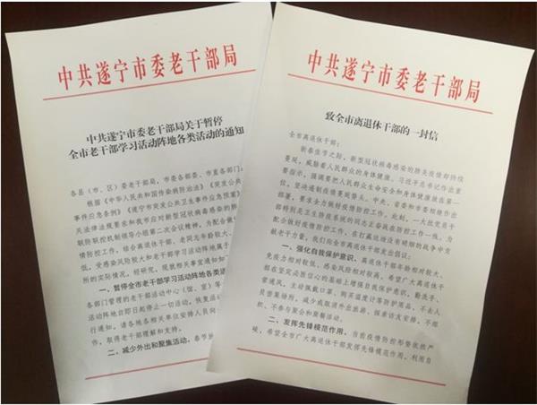 正面宣传强化引导。通过微信公众号、微信群向老干部发出倡议书《致全市离退休干部的一封信》,组织引导广大离退休干部强化大局意识,在做好自我防护的基础上,充分发挥自身影响力,带动身边群众通过官方主流媒体了解疫情和相关防控知识,不信谣、不传谣、不造谣,不随意转发、不恶意评论,做到科学认识疫情,消除恐慌情绪,维护公共秩序。其中船山区老干部刘仕国、周泽东,安居区老干部杨秀才、崔蜀军等撰写抗击新型冠状病毒诗词、唱响“防疫快板顺口溜”视频在各大新媒体平台发布,点击量达5.7万条次。