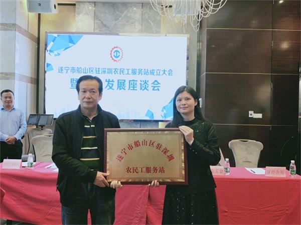 近日,船山区驻深圳农民工服务站成立大会暨返乡发展座谈会在深圳市罗湖区召开。船山区相关部门负责人,深圳遂宁商会代表、船山籍在深圳优秀企业家、优秀农民工代表参加会议。