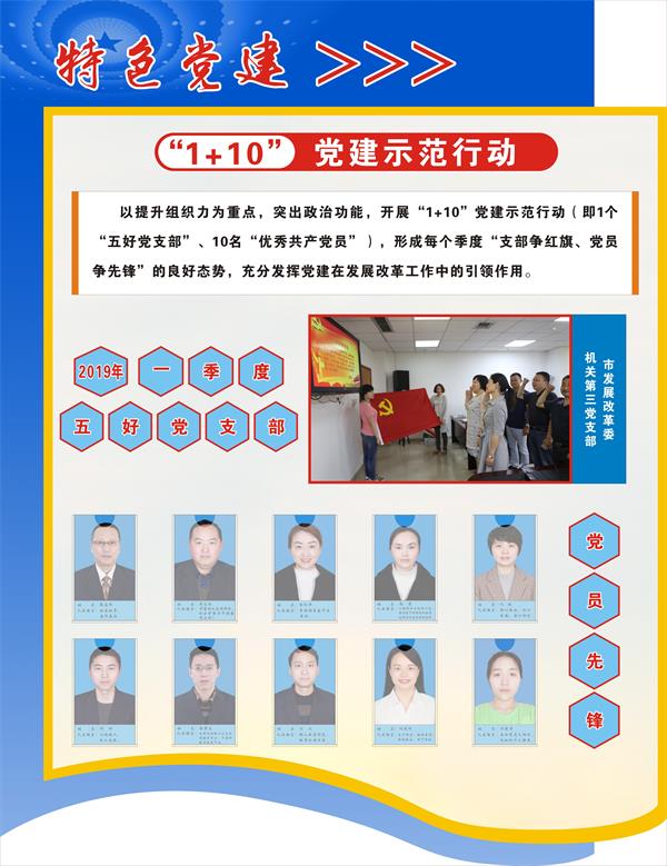 树立先进标杆。统筹机关“五好党支部”创建、“党员积分制管理”及干部绩效考核等,在全委开展“1+10”评选活动,“1”即1个“五好党支部”,“10”即10名“党员先锋”,推动形成“支部争红旗、党员争先锋”的良好态势。