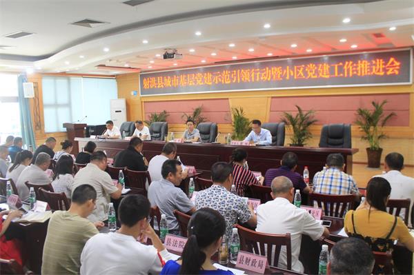 5月17日,射洪县召开城市基层党建示范引领行动暨小区党建工作推进会。