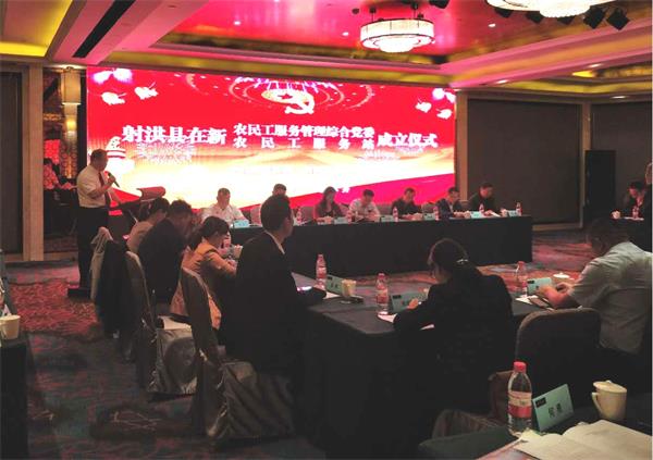 4月29日,射洪县在新农民工服务管理综合党委暨农民工服务站成立仪式在新疆乌鲁木齐举行。