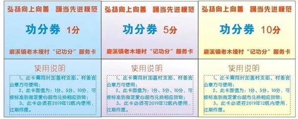 ●功分可“当钱花”,针对打扫清洁卫生、参加会议、资助基础设施修建等集体活动,分别发放蓝、白、绿三色“功分券”,凭“功分券”到定点“功分超市”购买物品;