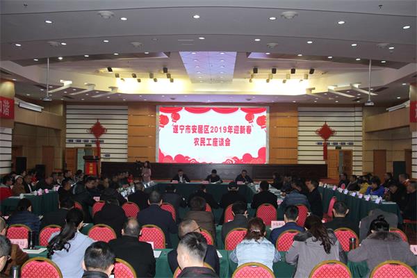 1月30日,安居区举办2019年迎新春农民工座谈会。 会议要求,全区各级各部门要认真践行以人民为中心的发展思想,当好广大安居籍农民工干事创业的坚强后盾。