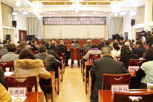 11月27日,射洪县召开县直机关“查问题、讲担当、提效能”作风整治行动代表委员监督工作第一次质询会。
