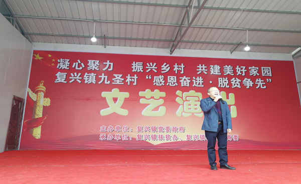 活动以文艺演出《开门红》拉开序幕,热情洋溢充满欢乐的舞蹈展现了九圣村群众幸福美好的生活面貌;快板《党的扶贫政策就是好》唱出了党的扶贫好政策,唱出了九圣村群众知党恩感党恩颂党恩的感恩心,也唱出了九圣村群众自力更生、脱贫攻坚的决心。