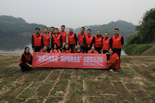 10月12日,蓬溪县委组织部机关党支部和蓬溪县发改局机关党支部党员志愿者到鸣凤镇“三五水库”联合开展“放养万尾鱼苗 助力绿色生态”主题党日活动。