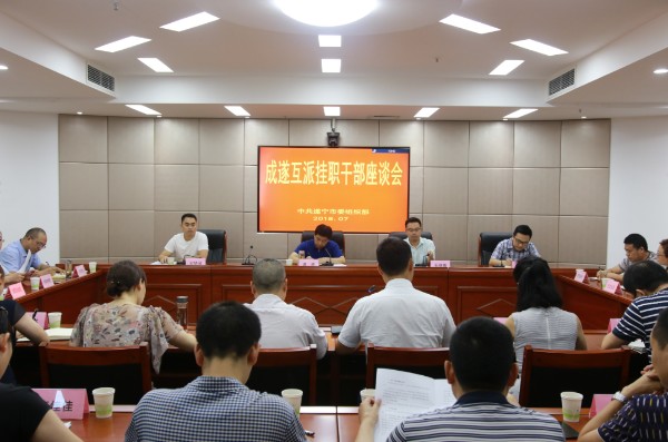 7月19日,市委组织部召开成遂互派挂职干部座谈会。市委组织部常务副部长蒋勇出席会议并讲话;2017年成遂互派挂职干部、2018年遂宁赴成都挂职干部及相关单位代表参加会议。
