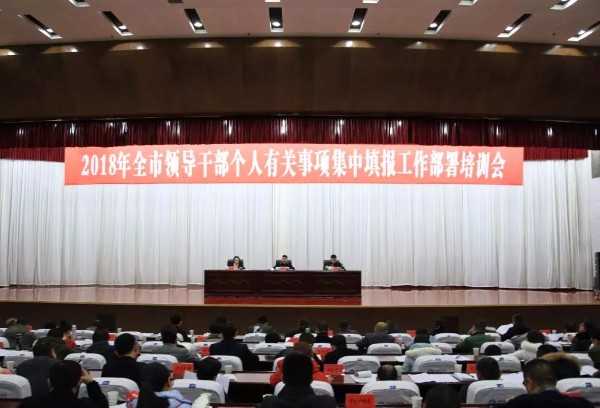 为贯彻落实党的十九大全面从严治党向纵深推进的新部署新要求,进一步学懂弄通做实“两项法规”,1月3日,我市召开2018年领导干部个人有关事项集中填报工作部署培训会,要求在1月31日前完成集中填报工作。