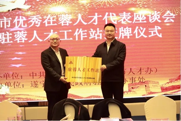 近日,遂宁市优秀在蓉人才代表座谈会暨驻蓉人才工作站授牌仪式在成都举行。在蓉的遂宁籍优秀人才代表、挂职锻炼干部代表、企业家代表,以及天津大学四川创新研究院负责同志共话遂宁发展,共叙校地友谊、�哿ν�心为遂宁筑“三城”兴“三都”、加速升腾“成渝之星”引智聚力。