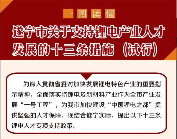 《遂宁市关于支持锂电产业人才发展的十三条措施(试行)》的通知》全文如下。