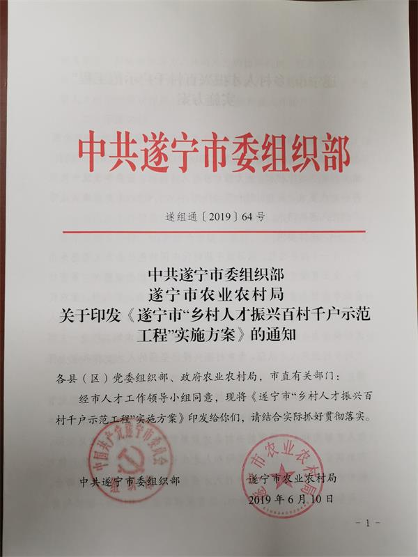 为加强新时代乡村人才队伍建设,助推乡村振兴战略实施。6月10日,我市出台了《遂宁市“乡村人才振兴百村千户示范工程”实施方案》。