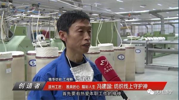 冯建国:作为纺织行业的一线工人、工程技术人员,首先要有热爱本职工作的精神,二要有责任感,三要有吃苦耐劳的精神。工作中出现的问题,要随喊随到,哪怕是三更半夜都要来处理问题。