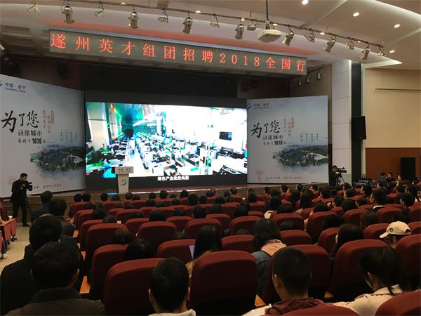 10月25日,遂州英才组团招聘2018年全国行活动走进西南大学,开展推介宣传及现场招聘活动。西南大学党委副书记徐晓黎及有关校领导,市委常委、组织部长周鸿及组织部和人社局相关领导参加推介会。