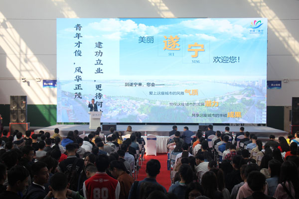 陈建有在致辞中说,遂宁是成渝经济区的区域性中心城市,四川省的现代产业基地,是成都经济圈和成都平原城市群的重要组成部分。遂宁市经济社会的蓬勃发展为高校人才输送工作提供了良好的机遇,也吸引着众多优秀毕业生加盟遂宁。希望这样的招聘活动能架起西北工业大学和遂宁人才交流的桥梁,让更多的优秀人才源源不断地流向遂宁,支持和融入遂宁的发展大潮。