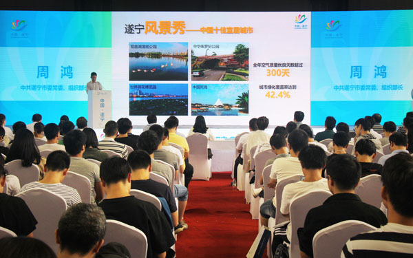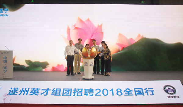 近年来,遂宁市认真贯彻落实习近平总书记关于人才工作的重要指示精神,大力实施人才强市战略,以“遂州英才七大计划”和“万名人才集聚工程”为工作重点,全市人才事业实现突破发展。自2013年以来,我市每年集中组织全市企事业单位赴高校开展遂州英才组团招聘活动,成功吸引近万名优秀人才来我市创新创业。武汉大学是今年遂州英才组团招聘全国行活动的首站,活动还将于10月12日、10月18日、10月25日、11月7日分别在西北工业大学、哈尔滨工业大学、西南大学、四川大学举办推介会及现场招聘,共提供18个科级领导干部岗位、398个事业单位岗位、370个重点企业岗位,是历年遂州英才组团招聘全国行活动规模最大的一次。