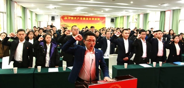 “我宣誓:忠于中华人民共和国宪法,维护宪法权威,履行法定职责,忠于祖国、忠于人民,恪尽职守、廉洁奉公,接受人民监督,为建设富强民主文明和谐美丽的社会主义现代化强国努力奋斗! ” 11月11日,2019年全市初任公务员宪法宣誓仪式在市委党校举行。