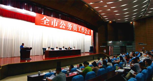 7月9日,全市公务员工作会议召开,深入贯彻落实全国、全省、全市组织部长会议精神和全省公务员工作会议精神,回顾总结党的十九大以来全市公务员工作,研究部署当前和今后一个时期的工作。市委常委、组织部长周鸿出席会议并讲话。