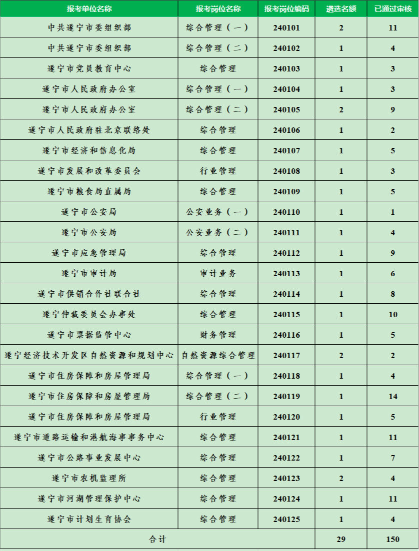 2024年遂宁市市直机关公开遴选公务员报名情况统计 (截至2024年5月20日18:00)